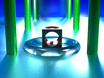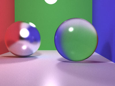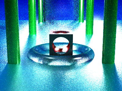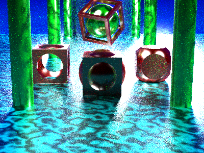 I wrote a path tracer in my final semester at DigiPen. The first step was to create an application that had a camera object and could handle light ray intersections with spheres, boxes, cylinders, and triangles. I added some simple Phong lighting for the first phase. Next, I added reflection, shadows, transmission, and anti-aliasing. At this point, the application was only a ray tracer. It performed one bounce for transmission or reflection. To make a path tracer, I added the ability to recursively bounce rays throughout the scene, collect color values, and terminate recursion after a certain number of bounces based on survival probability. This greatly enhanced the realism of the rendered images. Lastly, I added CSG (constructive solid geometry) and procedural perlin noise textures for fun.